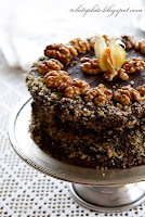 – Syrop cukrowy (do orzechów) zrobiłam mieszając 1 część wody i 1 część cukru. Podgrzałam do czasu aż zrobił się gęsty syrop i wtedy dodałam orzechy, którymi następnie udekorowałam tort