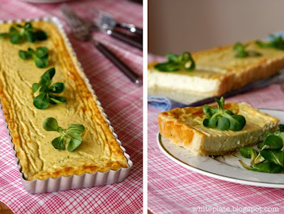 Na dzisiejszy obiad wybrałam z książki przepis na tartę z serem roquefort i szczypiorkiem. Z powodu braku mascarpone przygotowałam ją z ricottą, a podałam z roszponką w sosie vinegret. Polecam :)