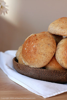Bułki ułożyć na blasze wyłożonej papierem do pieczenia. Posmarować mlekiem i odstawić do wyrastania na godzinę. Po tym czasie ponownie posmarować mlekiem, posypać solą i wstawić do piekarnika nagrzanego do 200 st C. Piec 20-30 minut. Bułeczki powinny się zrumienić, ale pozostać miękkie.