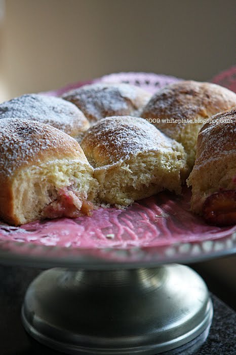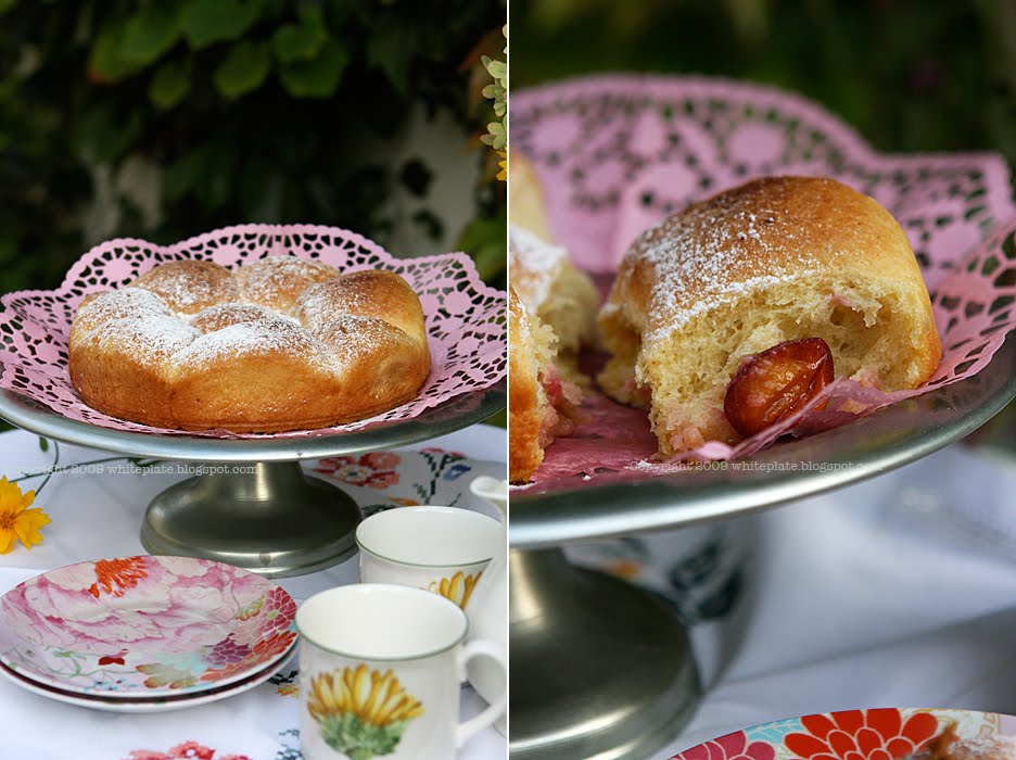 Przed pieczeniem napełnić buchty: 2 śliwki przekrojone na pół plus 1 kostka cukru (do 1 dużej buchty).