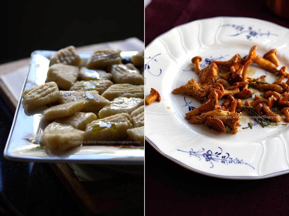 Podsmażane kopytka z kurkami i sosem pomidorowym