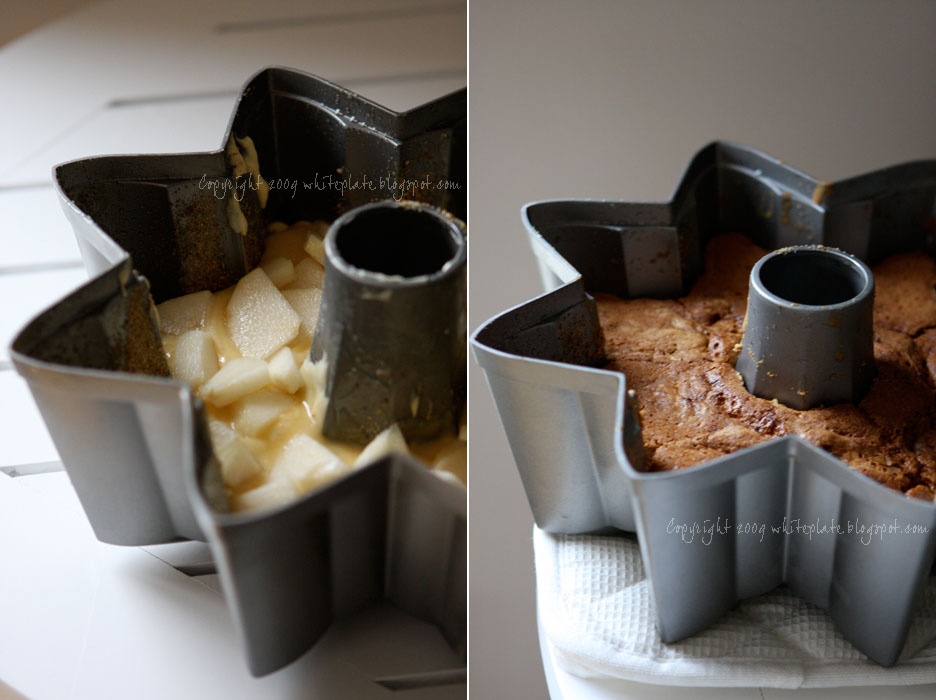 Piekę więc ciasto z gruszkami i kremem marcepanowym.