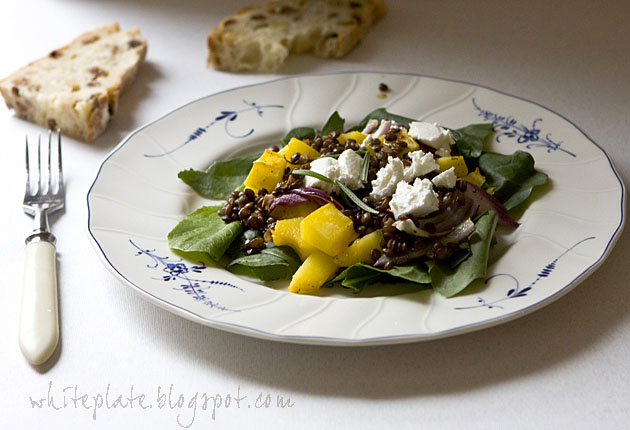 Sałatka z brązową soczewicą i squashem (lub dynią)
