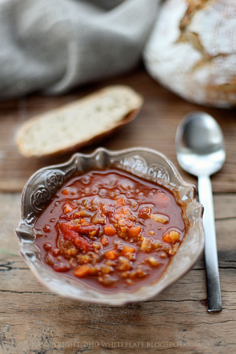 Ja swoją zupę jadłam z pszennym chlebem z garnka, na który przepis zamieściłam dziś w Pracowni Wypieków.
