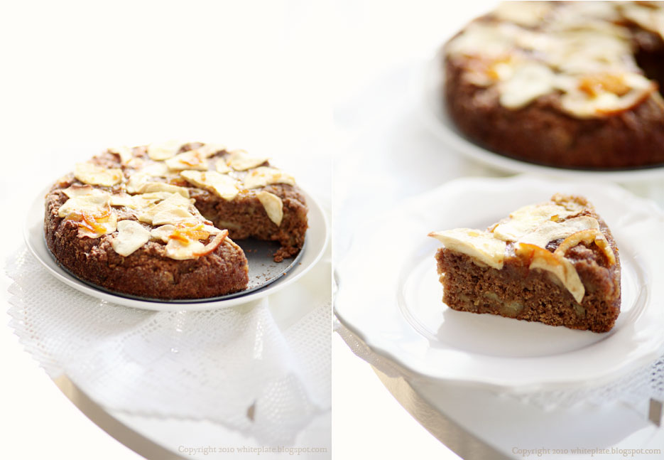 Wstawić do piekarnika i piec 30-35 minut. Wyjąć, na wierzchu ułożyć plasterki z dwóch pozostałych jabłek, spryskać sokiem z cytryny i ponownie wstawić do piekarnika i dopiekać kolejne 30-35 minut.