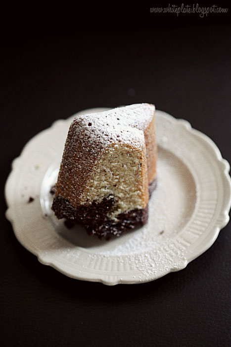 Upieczone i ostudzone ciasto można polać czekoladą, oprószyć pudrem. Ja polałam je syropem kawowym z poprzedniego przepisu na babkę kawową.