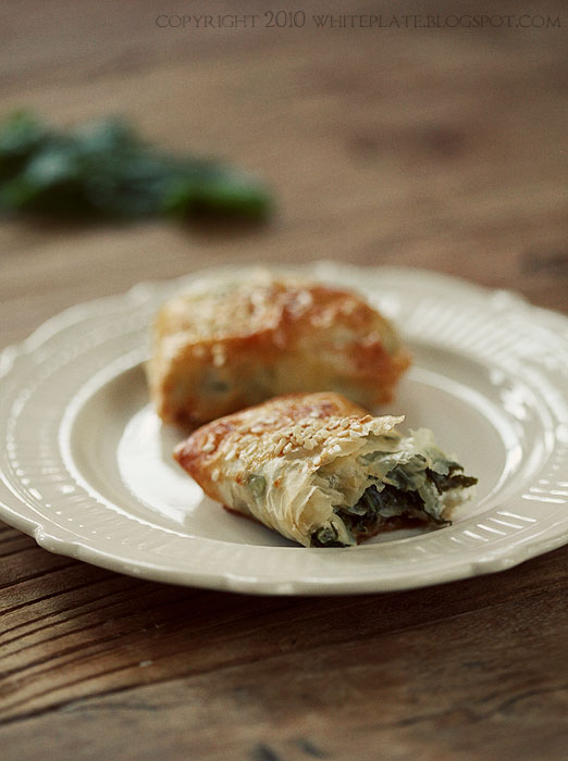 Dziś upiekłam coś bardzo łatwego. Chciałam wykorzystać do tego ciasto francuskie, ale okazało się, że się skończyło. Użyłam więc kilka płatów ciasta filo – jedno i drugie sprawdzi się równie dobrze. Takie paczuszki na pewno posmakują tym, którzy lubią spanakopitę.