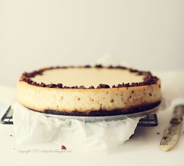 Wyjąć z piekarnika tortownicę ze spodem, wlać masę serową, wstawić do piekarnika, zmniejszyć temperaturę do 160 st C i piec 50 minut.