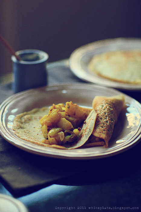 Oryginalne placki są ogromne – mają pewnie ponad 30 cm średnicy. Te, które usmażyłam dziś, są niewielkie, jak naleśniki. Taka namiastka prawdziwej masali dosy.