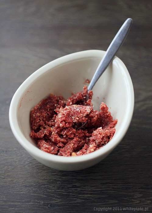 ok. 1 płaskiej łyżki tartej bułki (najlepiej świeżo zmielonej w domu – od smaku bułki naprawdę wiele zależy)
