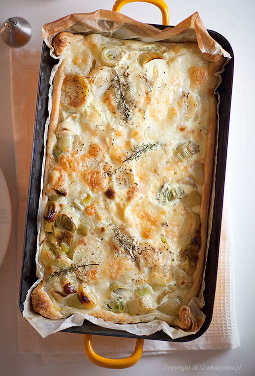Tarta, którą zrobiłam dziś, nawiązuje smakiem do jednej z moich ulubionych zup-kremów, vichyssoise. Zupy-nic, ale pożywnej zimą.