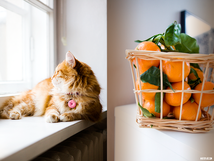 Kot zwija się na krzesłach, dywaniku łazienkowym albo schowany za zasłoną, tuż przy kaloryferze. Codziennie wstaje z nami o 6:30, kiedy jest ciemno i idzie do kuchni leniwie wpatrując się w nas przygotowujących śniadanie.